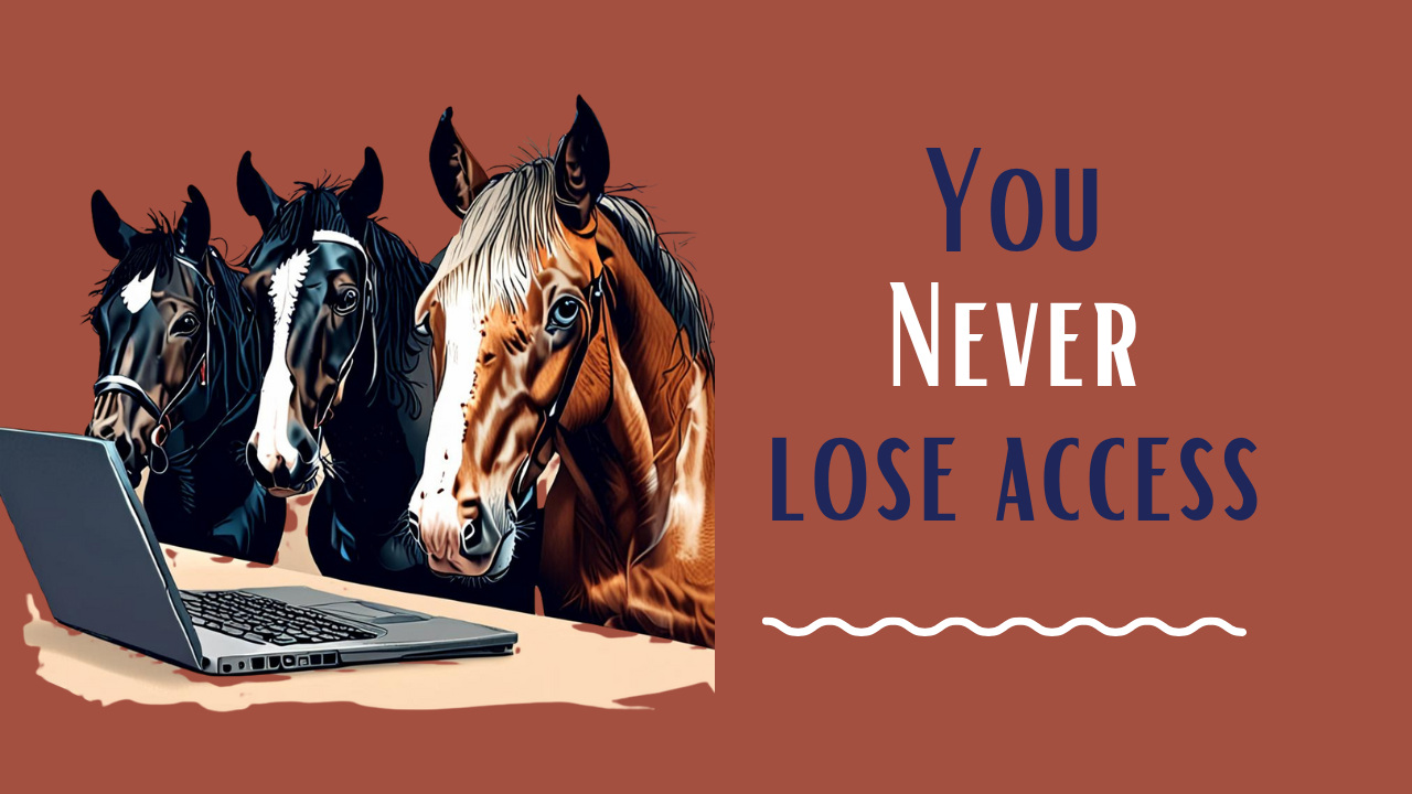 Your access to the course materials never expires! You never lose access to your course materials, as long as we are alive and able to support the course platform (and we hope that is a very, very long time). That means that you can work as fast or as slow through the materials as you wish. That means that if you get sick, tired, injured - you can pause at anytime and come back to it whenever you and your horse are ready for more. It will always be there for you, and so will we.